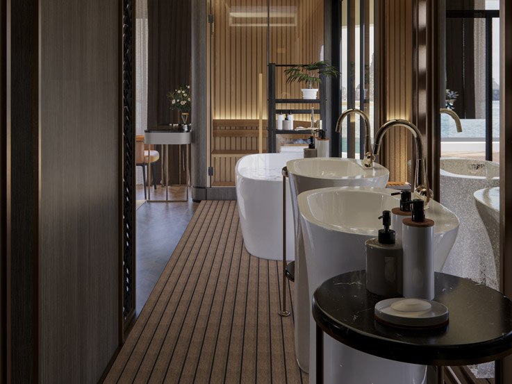 Equipped with enough amenities to serve all your needs, Azura Horizon is available to fulfill your journey, features 3 bed types to diversify your choice. Each suite comes with a private balcony featuring two sun loungers, an ocean-view bathtub, exclusive amenities including a mini golf putting green, and a private dry sauna.