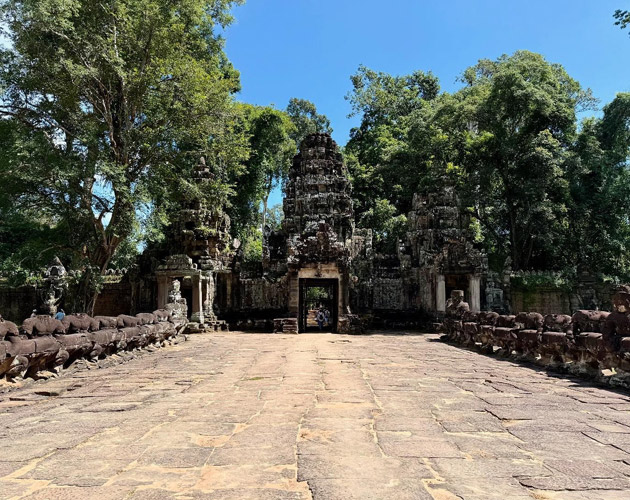 After a hearty breakfast at the hotel, meet up with your guide at 8:00 AM and head out to explore the ancient capital of Angkor Thom, built in the 12th century. You’ll start at the South Gate, famous for its massive statues depicting the churning of the ocean of milk.