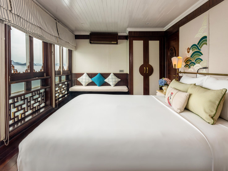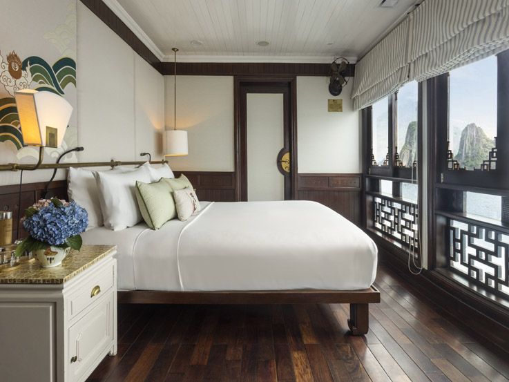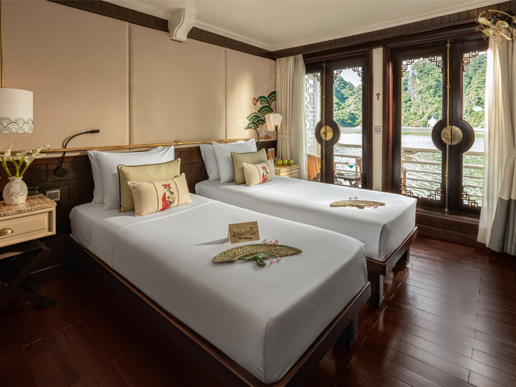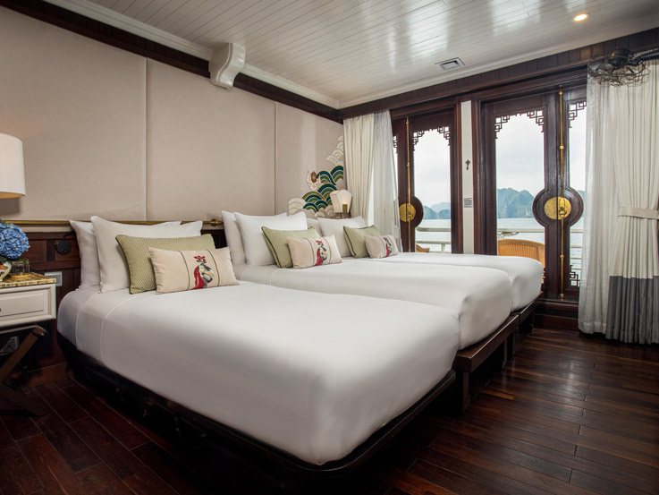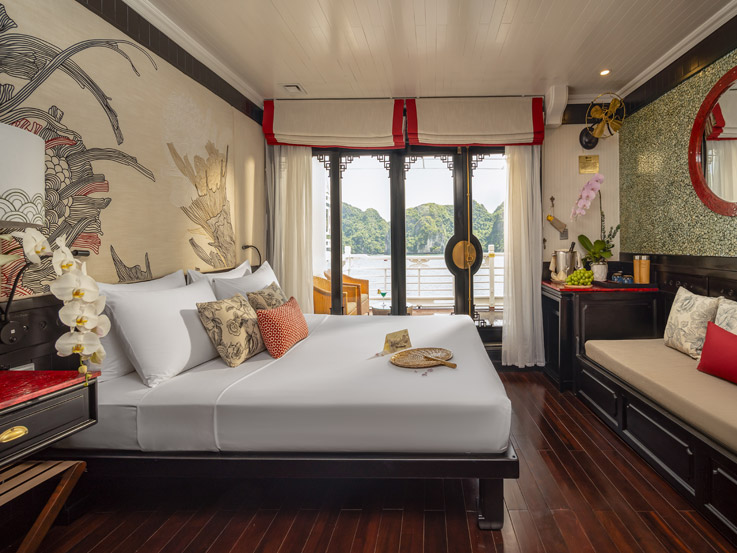 Inspired by luxury and comfort, the Long Quan Suite is among the most spacious onboard. It comes with a sofa bed, making it a great choice for families or groups. With refined décor and a private balcony, it ensures an indulgent stay.