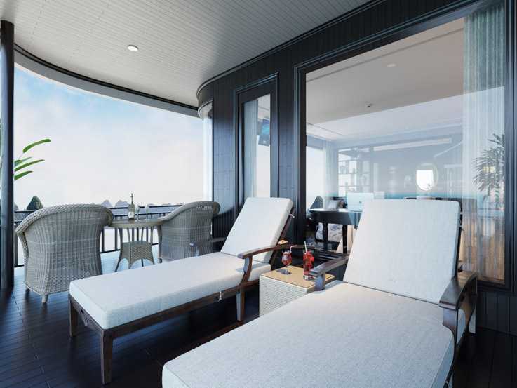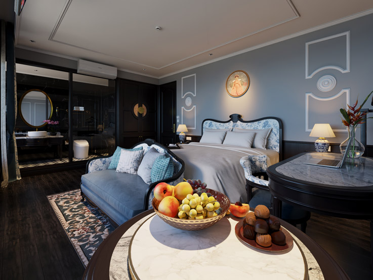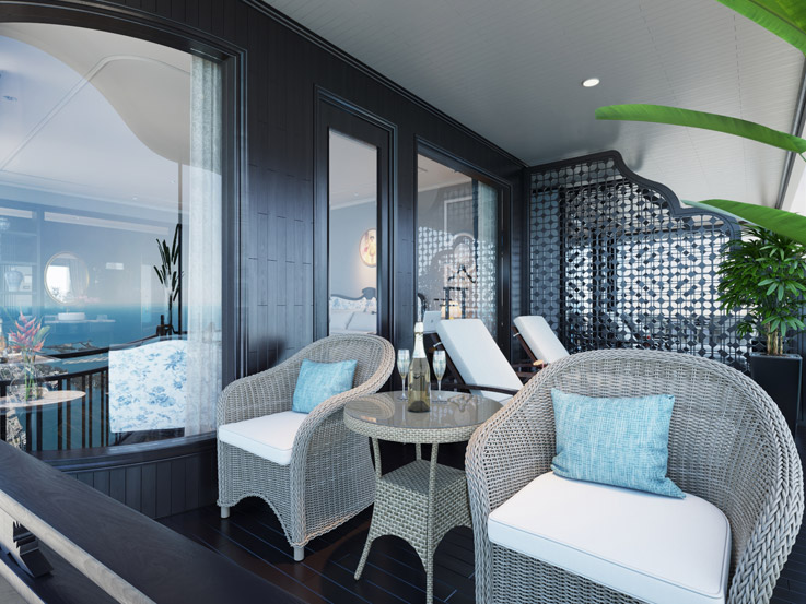 Compact yet elegant, the Senior Suite is ideal for travelers seeking both coziness and charm. Enjoy a private balcony with scenic vistas and a restful interior ambiance.