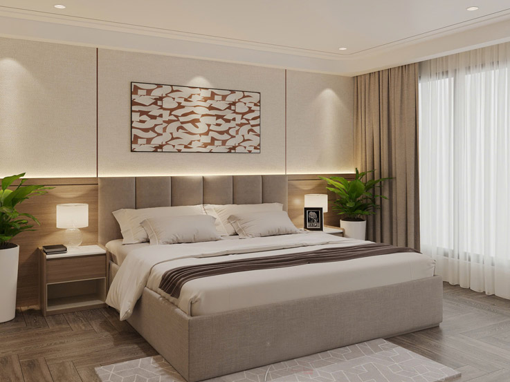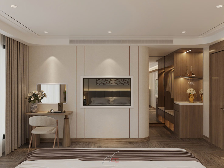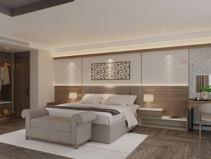 This suite offers a 180-degree view of Lan Ha Bay through floor-to-ceiling windows. Spacious and modern, it allows you to admire the breathtaking scenery right from your bed, combining style with comfort.